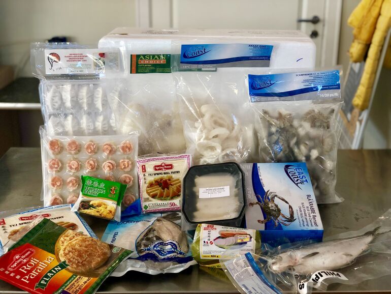 Her finner du mye frysevarer, alt fra kylling, skalldyr, fisk, våruller og mye mer.